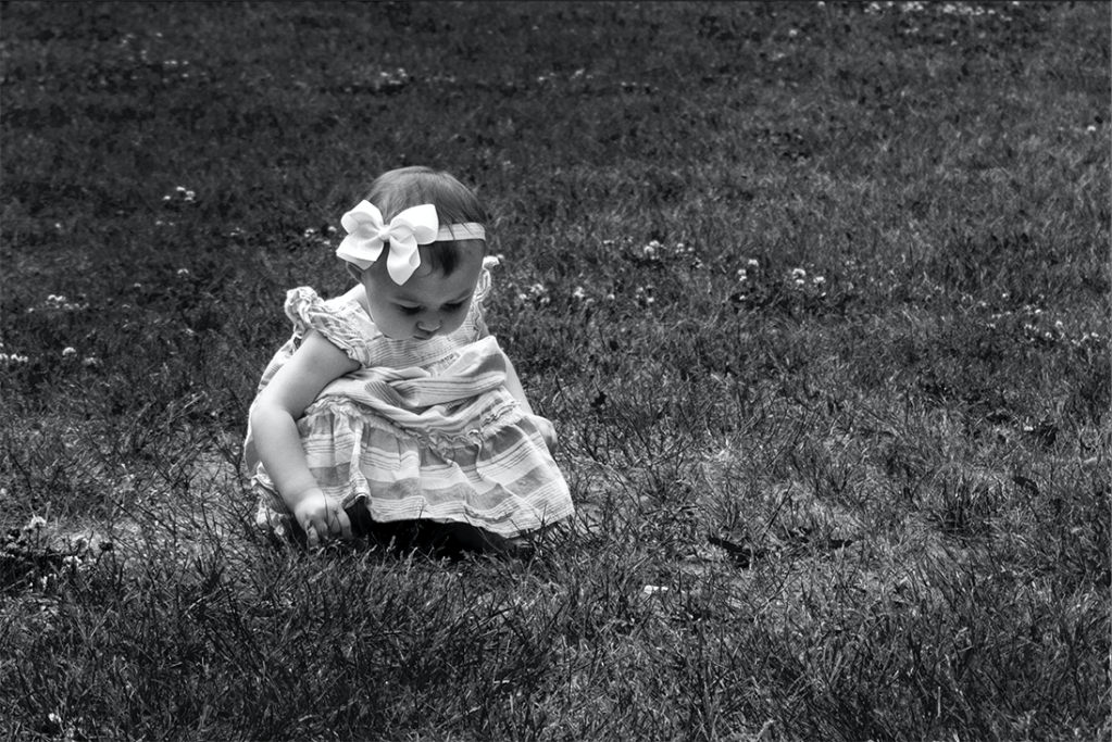 This photo was taken during a photo shoot with a friends family at a park. As we allowed her daughter to explore, she paused, looking down with a sense of wonder. In that moment, she appeared so innocent. I chose to edit the photo in black and white to emphasize her purity and the simplicity of the moment.