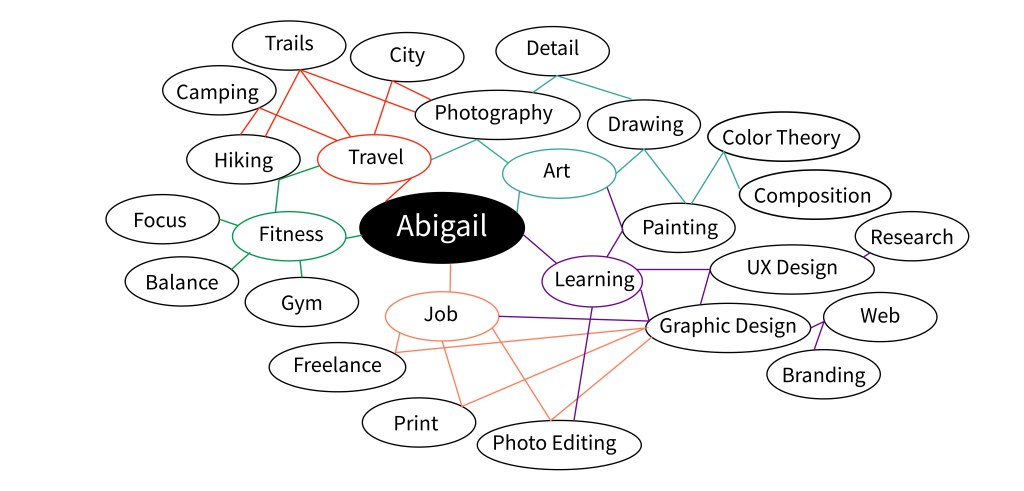 I work in print, photo editing, and freelance design, always blending visuals with purpose. Surrounding that is how I work and how I think. I’m detail-oriented, with a focus on balance, clarity, and precision, especially in print production and editing. I enjoy building visual systems that communicate well and look great. I value focus and I strive to stay centered in both my work and personal life. As the map grows outward, we hit UX Design.This is where I’m actively learning, exploring tools like Figma and Notion, and diving deeper into concepts like personas, wireframes, and prototypes. I touched on these during my design studies, and now I’m circling back to approach them with more intention.